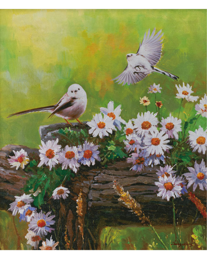 | 商品名 | 肉筆油彩画 春のシマエナガ |