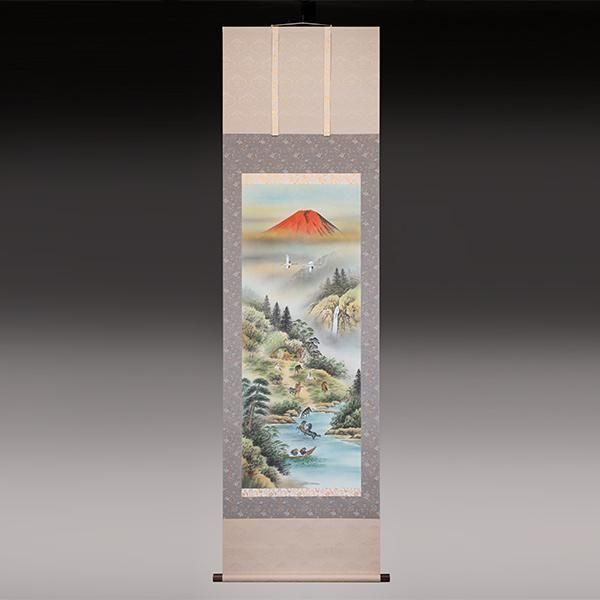 ● 寸法(約)/185×53cm ● 新絹本 ● 手彩色仕上げ ● 三段本表装 ● 紙箱収納 |