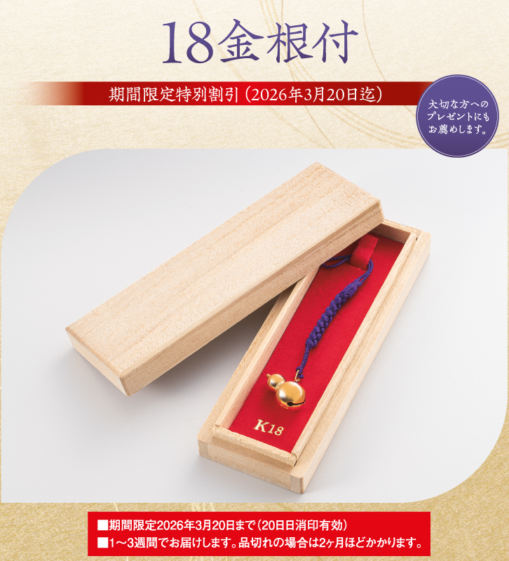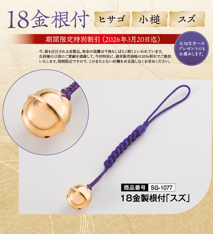 <img class='new_mark_img1' src='https://img.shop-pro.jp/img/new/icons15.gif' style='border:none;display:inline;margin:0px;padding:0px;width:auto;' /> SG−1077 18金製根付「スズ」期間限定特別割引(2026年3月20日迄)